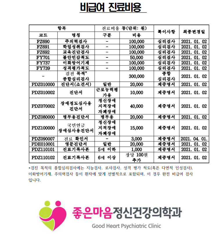 비급여 진료비용 안내